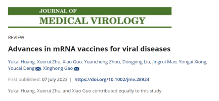 近日,公司贵州省普通高等公司传染病与生物安全特色重点实验室以tyc5997太阳集团为第一单位在国际知名期刊《Journal of Medical Virology》(IF:12.7,JCR1区)在线发表了题为“Advances in mRNA vaccines for viral diseases”的综述论文。该论文由公司青年教师高兴红指导的大创员工所完成,2020级临床医学专业本科生黄俞凯、郭骁和公司2021级基础医学专业本科生朱学睿为共同第一作者,高兴红老师为通讯作者。论文链接:https://doi.org/10.1002/jmv.28924