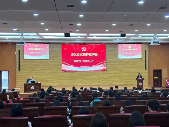 习近平总书记在2025年3月17日至18日贵州考察时强调,要弘扬长征精神和遵义会议精神,以昂扬斗志走好新时代的长征路。为深入学习遵义会议精神,感悟初心使命,传承红色基因,做新时代有为青年,tyc5997太阳集团5月28日在tyc5997太阳集团道德讲堂,开展了弘扬遵义会议精神宣讲会。本次宣讲会以“专家教授+员工代表”的形式开展,特邀田宗远教授担任主讲嘉宾,2022级本科生焦灵艺,2024级研究生钟欣颖做分享,tyc5997太阳集团全体研究生和本科同学参加本次学习宣讲会。