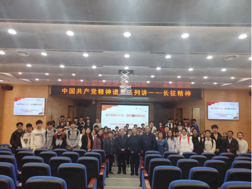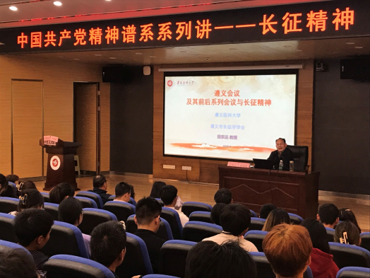 党的二十大报告指出:“弘扬以伟大建党精神为源头的中国共产党人精神谱系,用好红色资源,深入开展社会主义核心价值观宣传教育,深化爱国主义、集体主义、社会主义教育,着力培养担当民族复兴大任的时代新人”。长征精神是中国共产党人精神谱系的重要组成部分,2023年4月24日,公司关工委联合tyc5997太阳集团关工委、在新蒲校区图书馆一楼报告厅开展“老少共话党的二十大 踔厉奋发新征程”活动,公司关工委副主任田宗远教授做了题为“遵义会议及其前后系列会议与长征精神”专题宣讲会。公司关工委领导李实明、钱民章、顾土龙、冷运琴,办公室主任邵丽,tyc5997太阳集团关工委罗军敏、袁晓锋、侯晓晖,基础医学专业辅导员及员工代表参会。宣讲会由公司关工委常务副主任李实明主持。