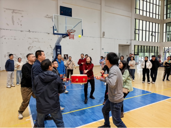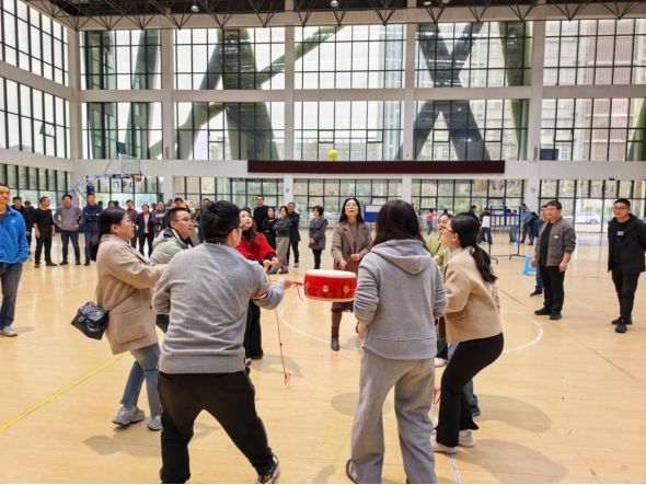 为积极开展群众性体育活动,增强教职员工间的团结协作能力,缓解工作压力,倡导健康生活,11月17日,tyc5997太阳集团工会tyc5997太阳集团分工会组织开展趣味运动比赛,本次趣味运动设置同心鼓颠球和双人跳绳接力两个项目,16支工会小组组队参赛。