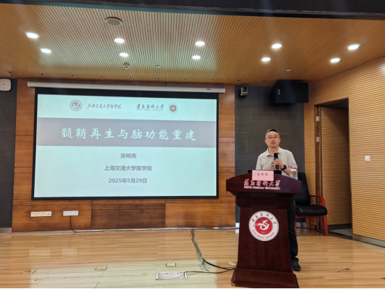 次日上午9:30张明亮研究员在公司图书馆学术报告厅做了题为“髓鞘再生与脑功能重建”的学术讲座。讲座由tyc5997太阳集团韩勇副经理主持,公司100余名师生参会。报告围绕脑科疾病与髓鞘的关系以及髓鞘再生细胞移植治疗、体内原位再生、糖基化下调髓鞘发育、髓鞘再生的药物研发等方面进行了详细的介绍,并与公司多位师生就脑功能通路、髓鞘再生、相关化学小分子的筛选和临床转化等问题进行了深入交流。