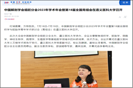 2023年7月16日-7月19日,中国解剖学会组胚分会2023年学术年会暨第18届全国组织学与胚胎学青年学术研讨会(青组会)在tyc5997太阳集团隆重召开。此次大会由中国解剖学会组胚分会主办、tyc5997太阳集团承办。