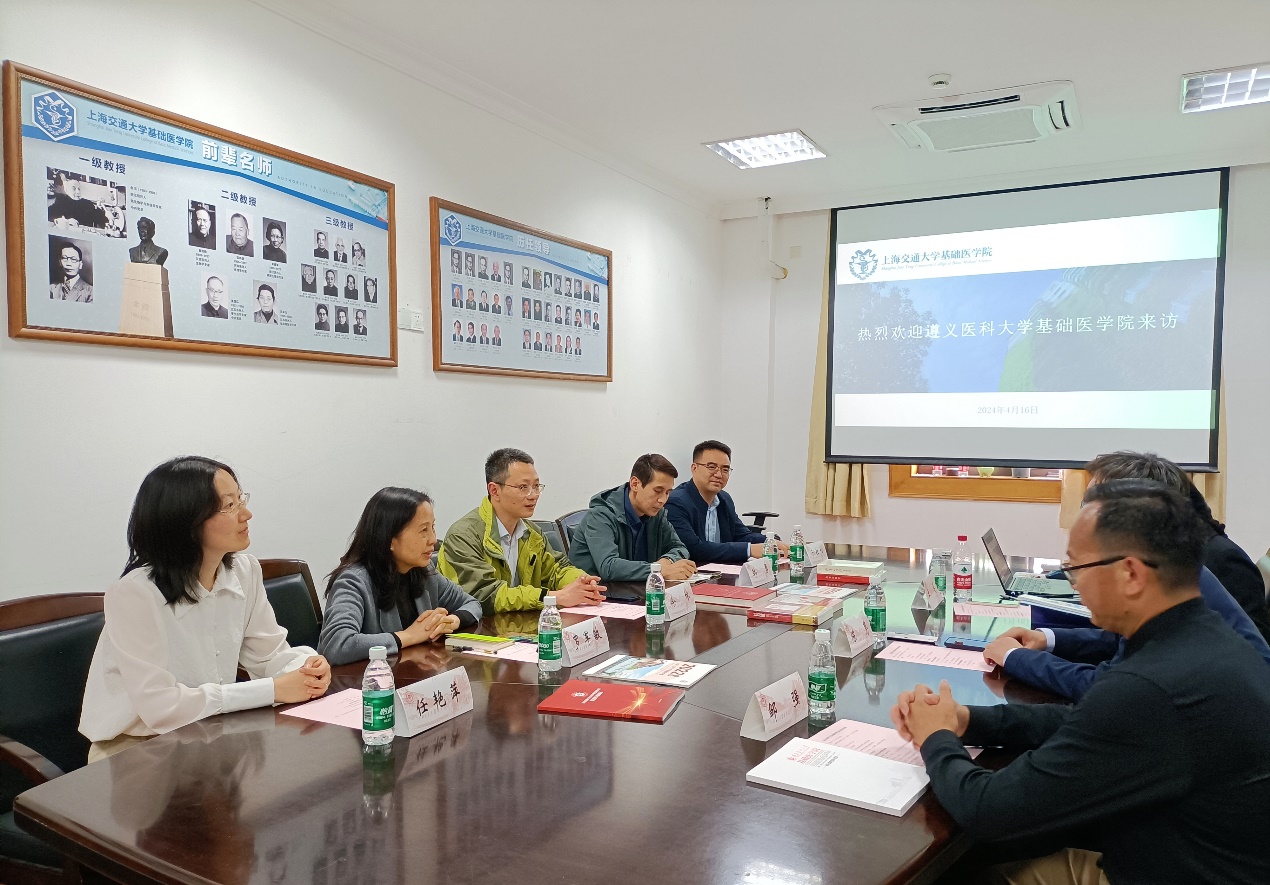4月16日,由基础医公司党委书记罗军敏教授带队,经理徐林、副经理韩勇、科技与研究生科科长于红松、组织胚胎学教研室副主任任艳萍一行五人赴上海交通大学tyc5997太阳集团学习交流。上海交通大学基础医公司党委书记陈亮、副经理邹强(主持工作)、副经理王昊、党办主任毕丹等陪同考察。交流座谈会由邹强主持。
