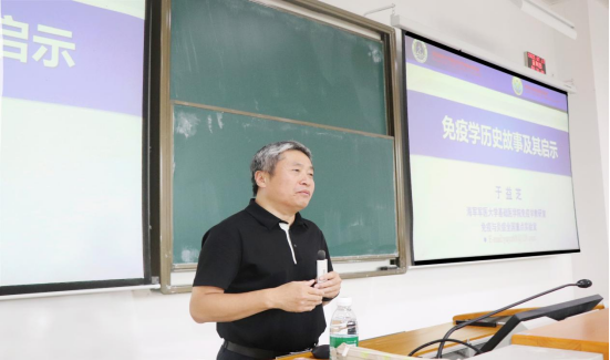 7月17日上午,免疫学专家、人民卫生出版社《医学免疫学》副主编、博士生导师于益芝教授走进tyc5997太阳集团课堂,为150余名本科生带来题为“免疫学历史故事及其启示”的讲座。活动由tyc5997太阳集团副经理刘晖教授主持。