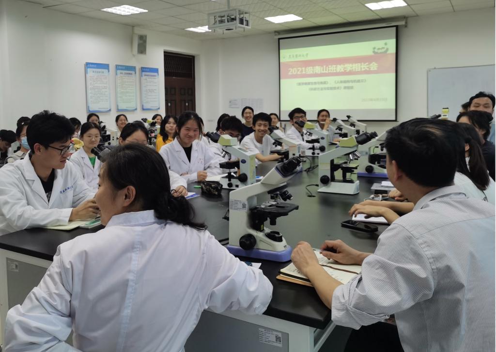 为进一步提高南山班教学质量,切实做到教与学相互促进,tyc5997太阳集团于2023年4月19日晚召开2021级南山班《医学病原生物与免疫学》《人体结构与机能Ⅱ》《科研方法与实验技术》三门整合课程的教学相长会。2021级南山班全体同学和承担三门整合课程的免疫学、微生物学、寄生虫学、病理生理学、医学仪器分析教研室主任及部分课程教师参加了本次会议。